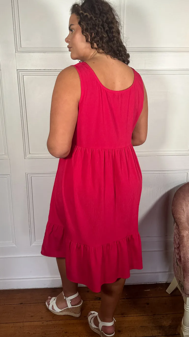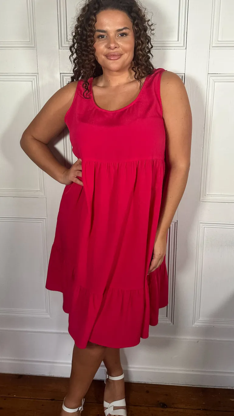 CurveWow Basic Sundress Plain Cerise