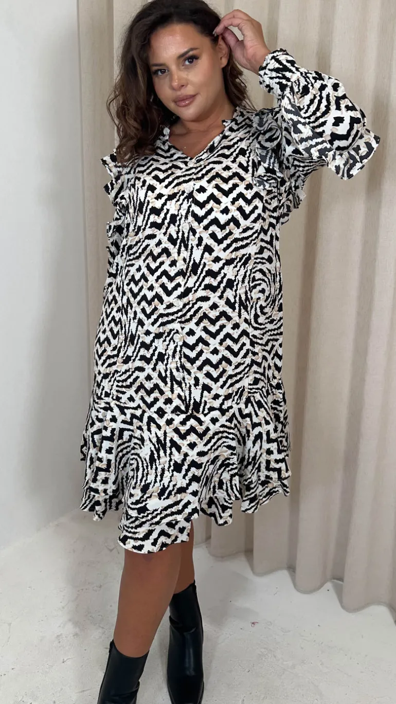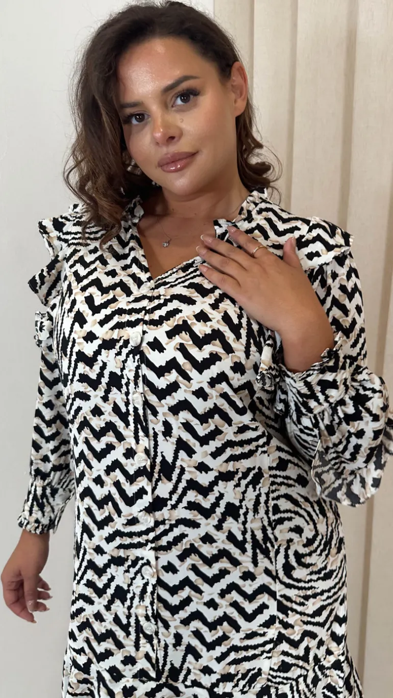 CurveWow Frill Shirt Dress Mono Abstract