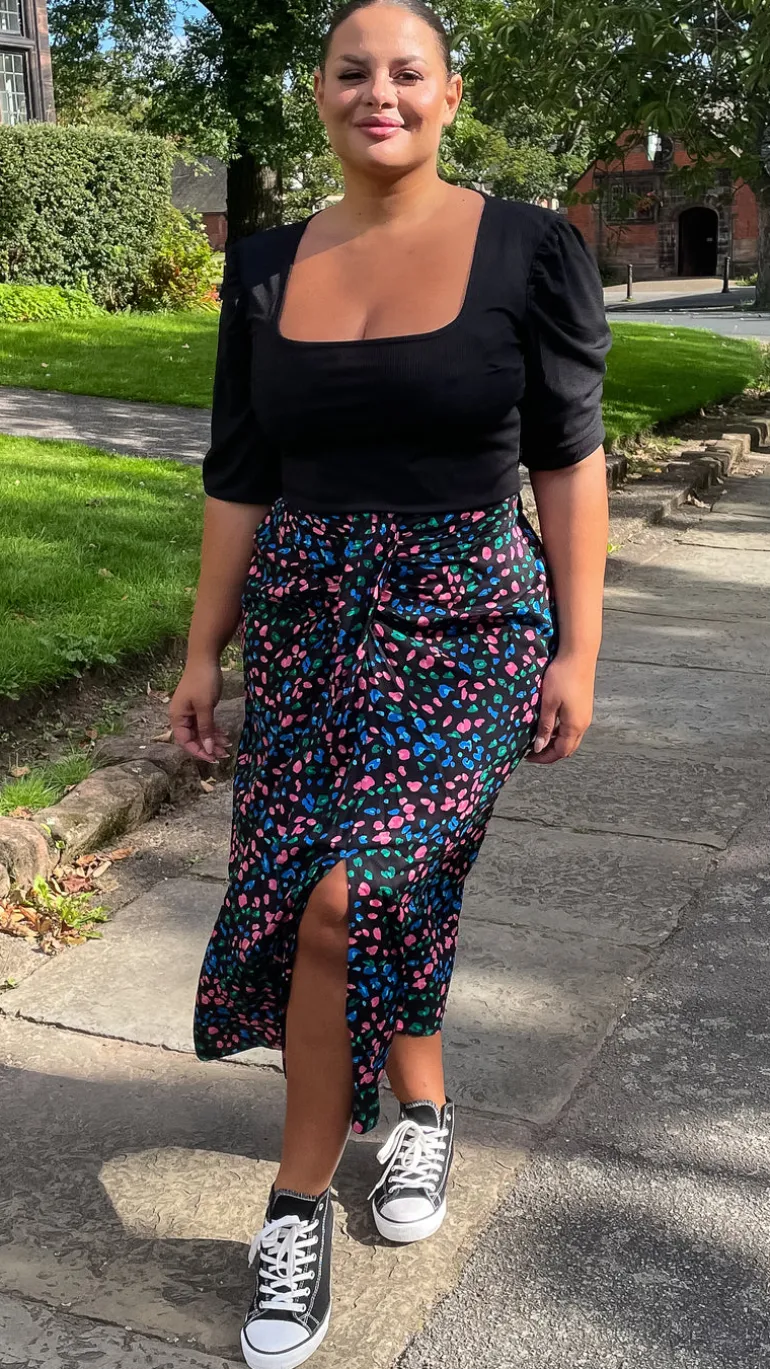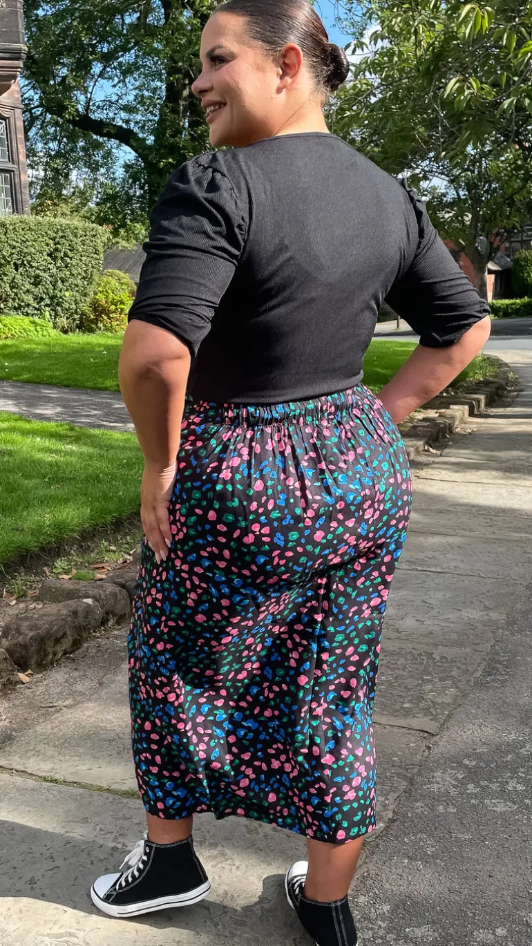 – Printed midi skirt