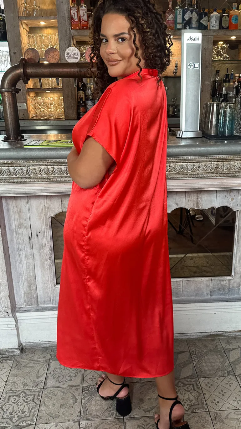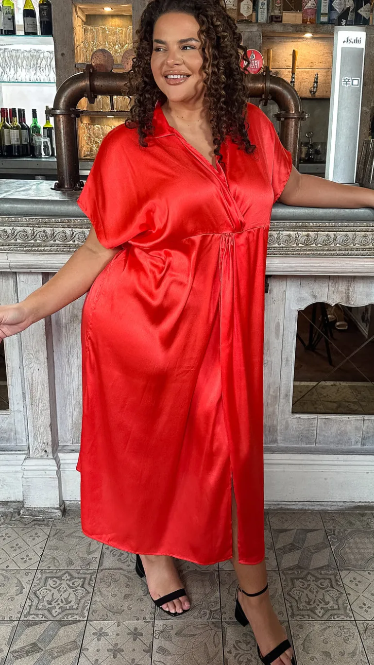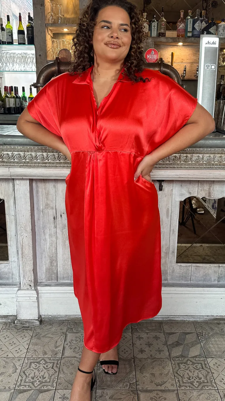 – Satin twist collared dress