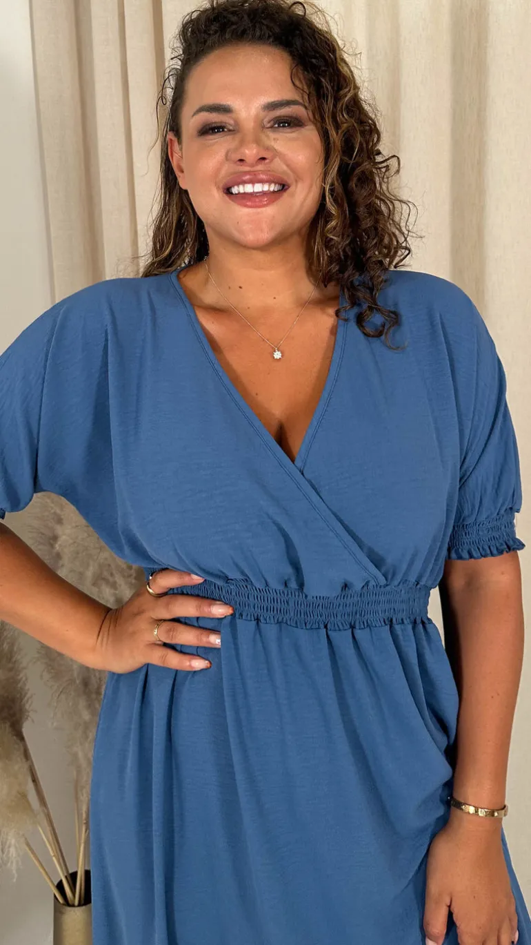 – Shirred waist cuff midaxi dress