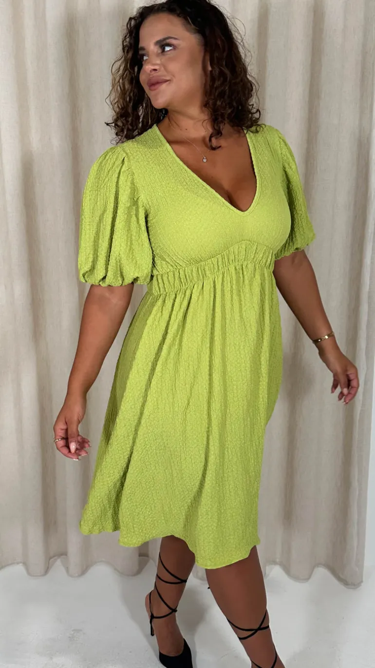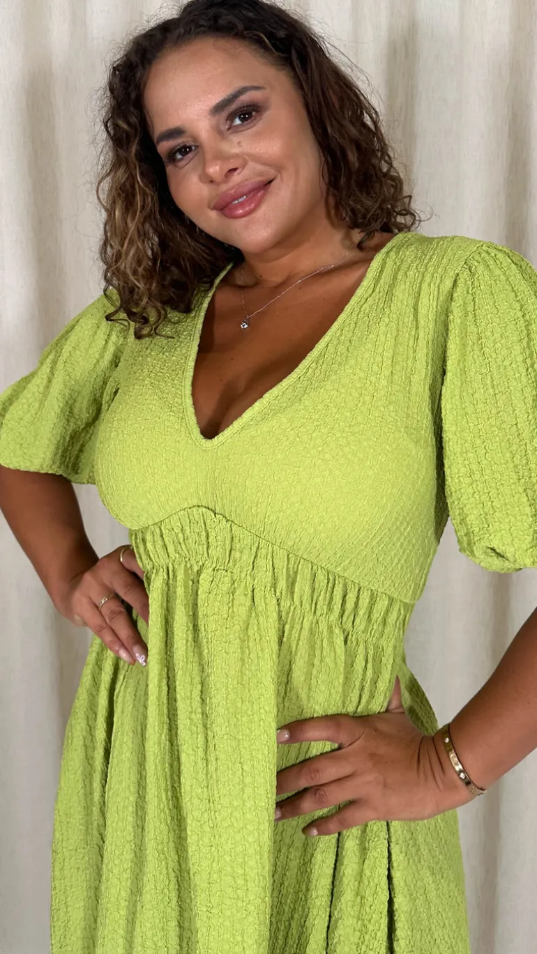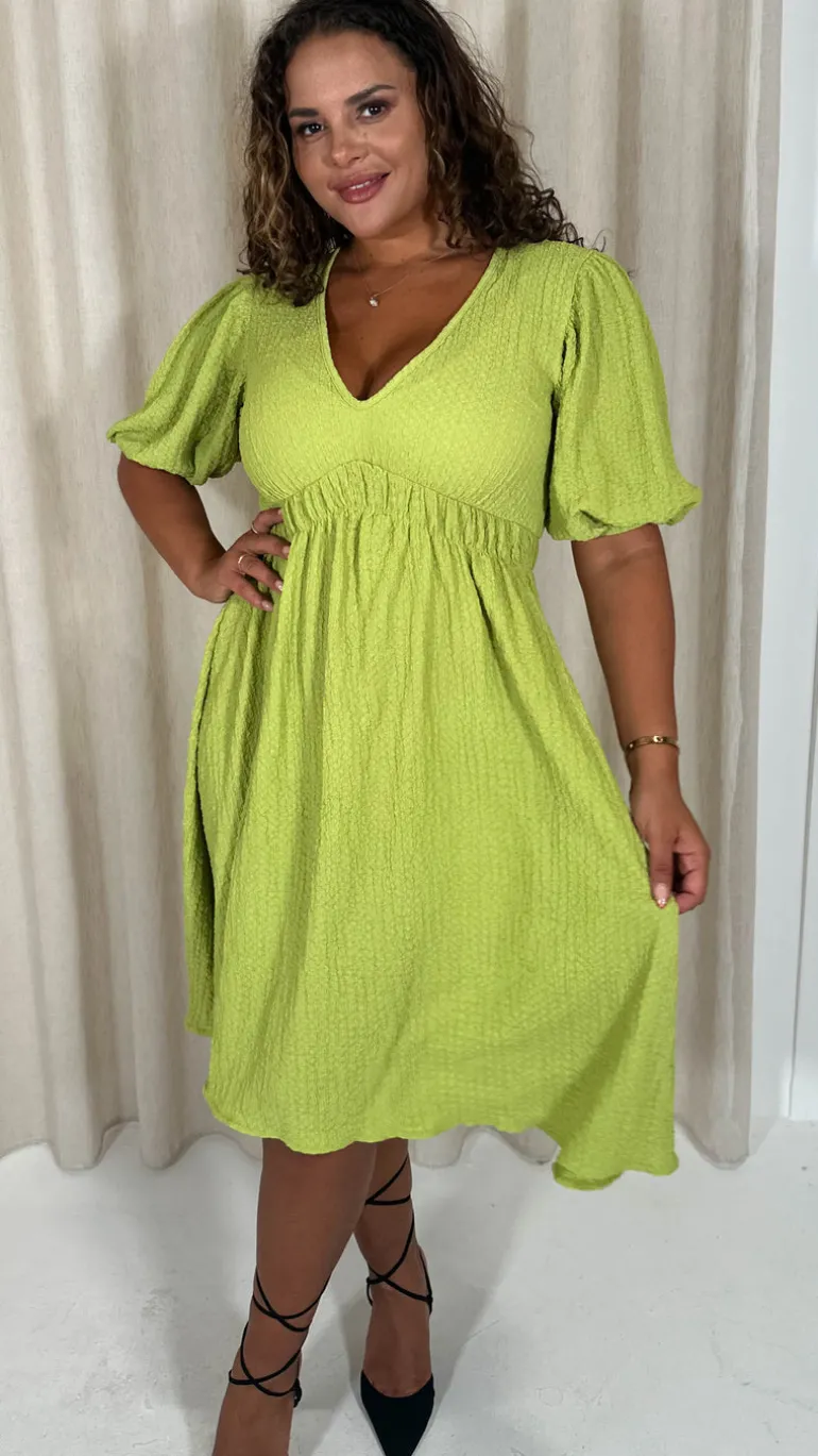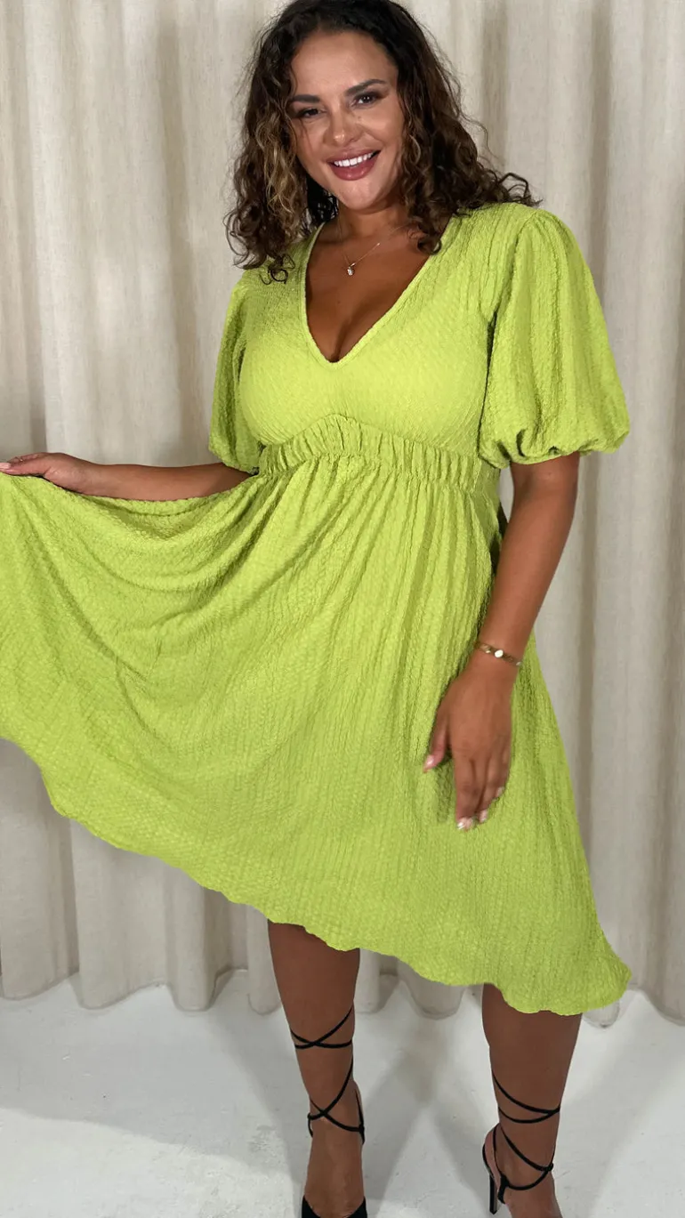 CurveWow Texture V Neck Midi Dress Lime
