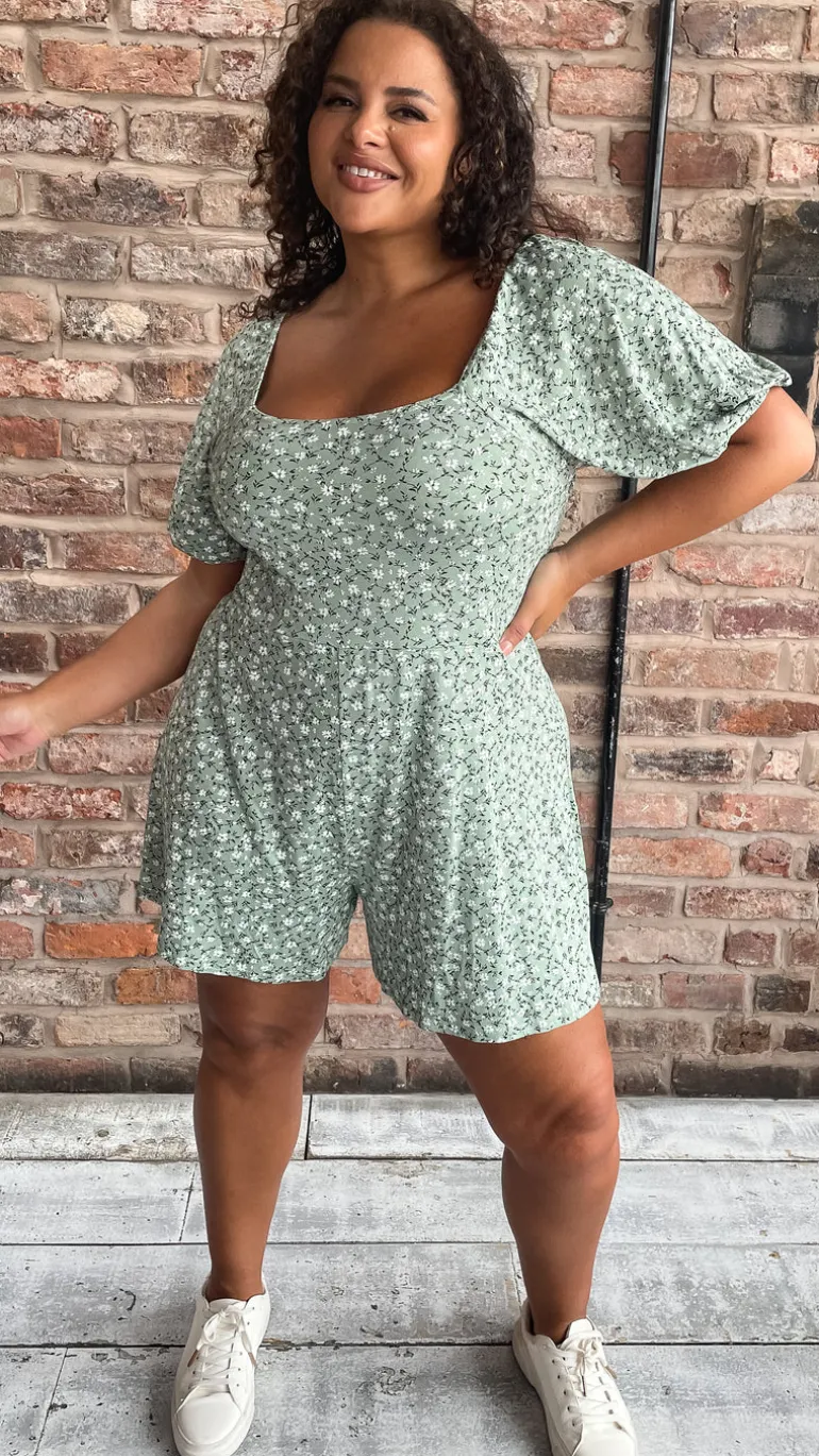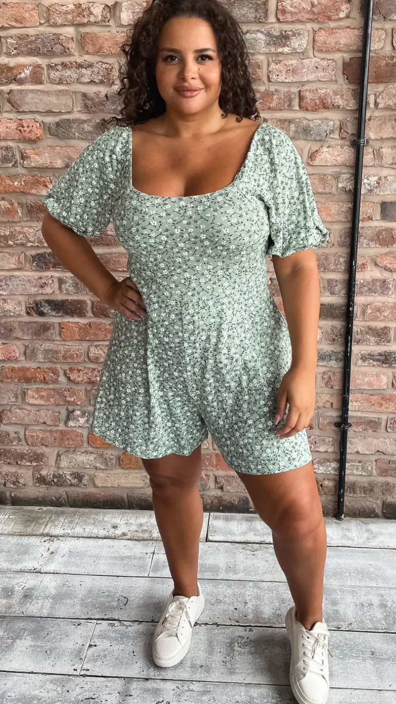 – Green floral tie back playsuit