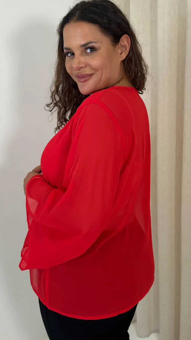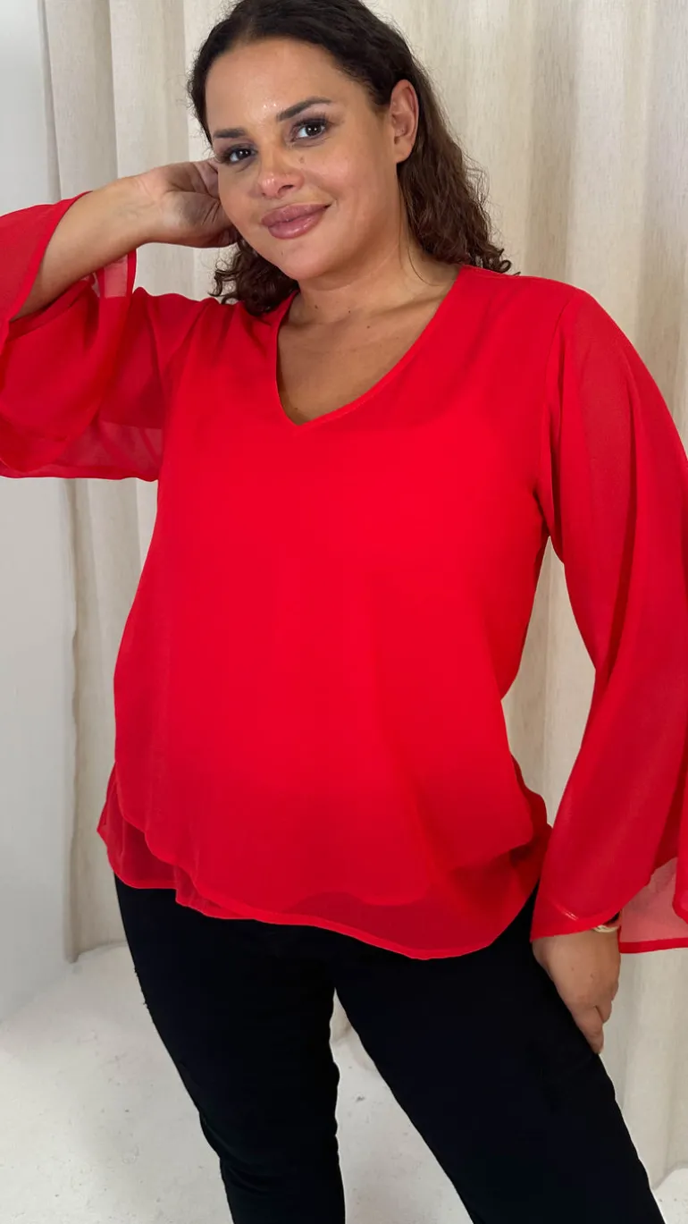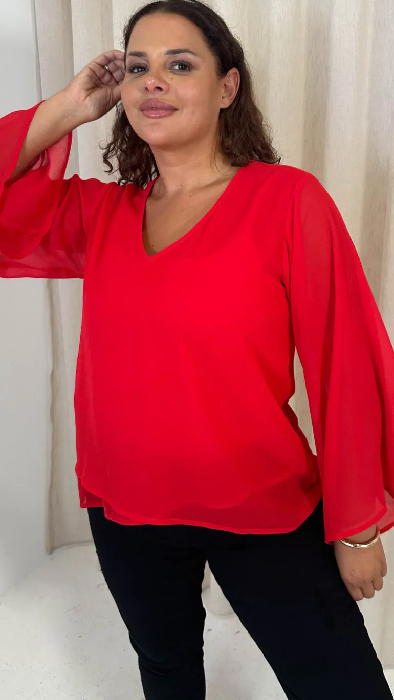 CurveWow V Neck Blouse Red